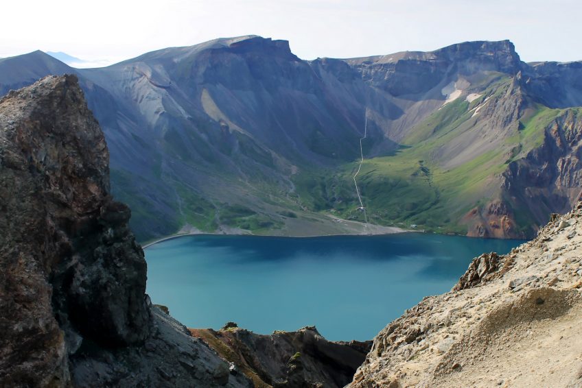 这种鲜艳的红色是参观这个火山口的吸引力的一部分。深红色的岩石与周围环境形成鲜明对比,尤其是火山口湖内水域的强烈蔚蓝色,以及青翠的植被。