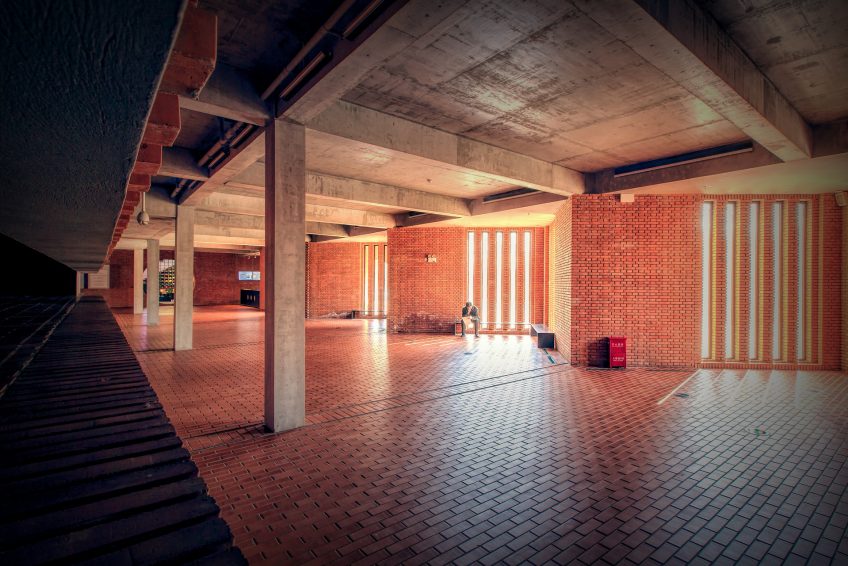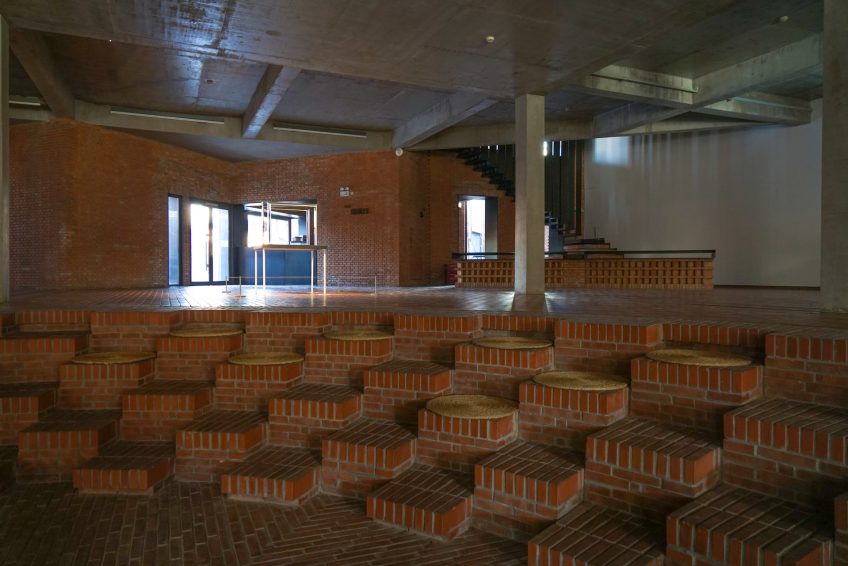 紅磚藝術博物館的主樓包括地面上的兩層滿樓和地下一層的投影室,地上部分設有九個展覽空間,兩個公共休閒空間,一個演講廳,一個藝術衍生空間,與餐廳,咖啡廳,俱樂部等一起,作為藝術博物館參觀體驗和建築結構延伸的一部分,以中國園林景觀概念設計和建造的景觀庭院也是紅色的一大亮點。磚。