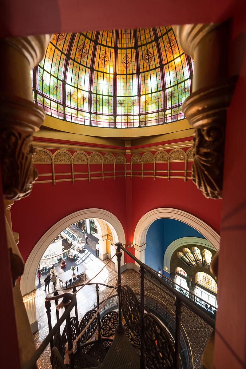 庞大中心穹顶是一大特色,圣诞期间这里将摆放一棵巨型圣诞树,是访客必看之景。欣赏遍布大楼美妙迷人的彩绘玻璃窗以及宏伟壮丽的建筑设计,并一睹穹顶旁边的 19 世纪原始楼梯。