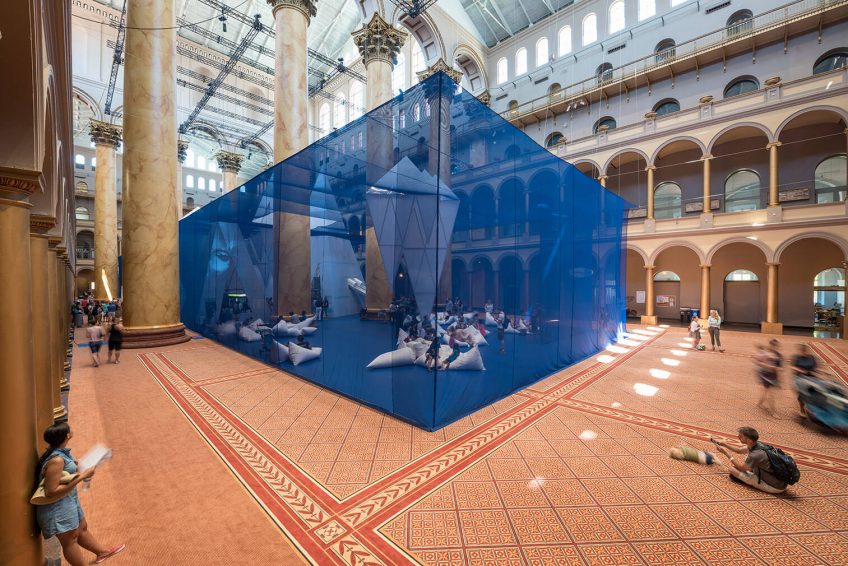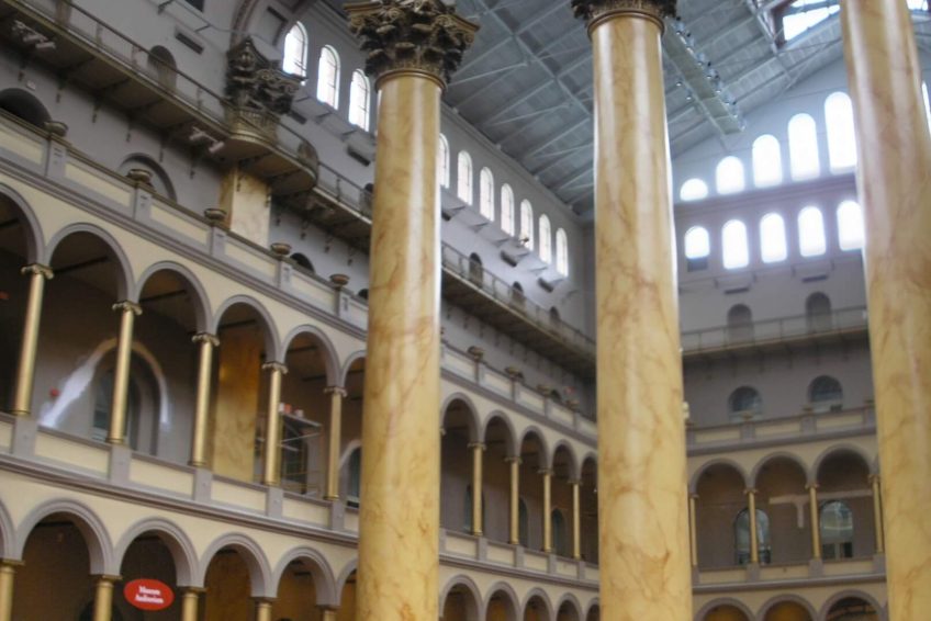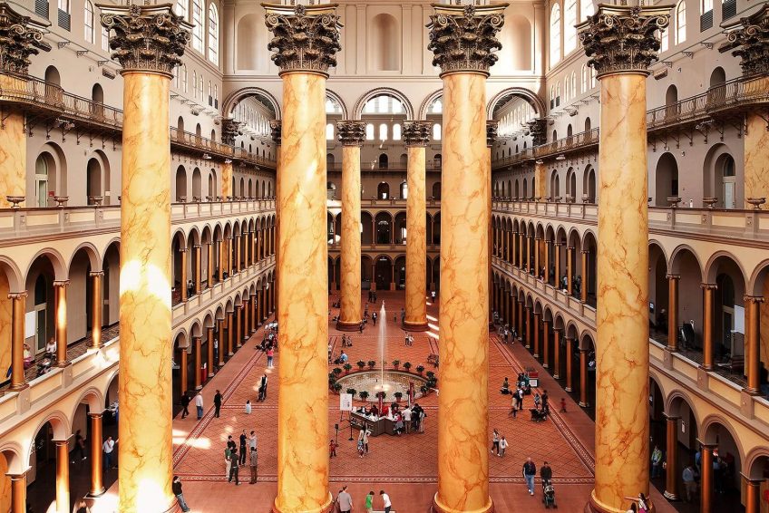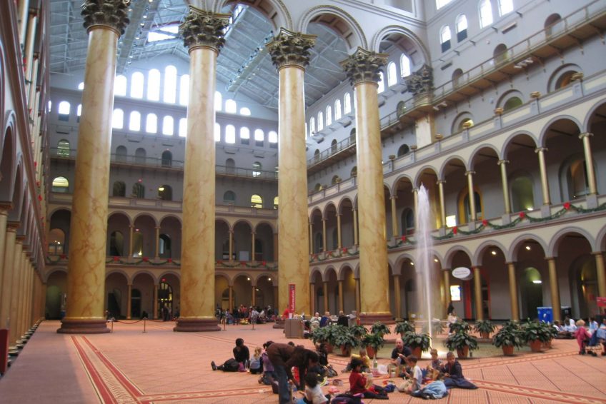 美国国家建筑博物馆位于华盛顿西北大街401号 它是一个“建筑、设计、工程、建筑和城市规划”的博物馆。它是由1980年的国会法案创建的,是一个私营的非盈利机构;它毗邻国家执法人员纪念碑和司法广场地铁站。该博物馆在宽敞的大厅周围举办各种各样的临时展览。