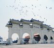 自由广场是台北公共集会的主要场所,拥有三个主要地标和公园。自由广场的东端是国立中正纪念堂。广场的两侧是北部的国家音乐厅和南部的国家剧院。公园环绕着广场,周围有一面墙。广场坐落在总统府大楼的视线范围内。