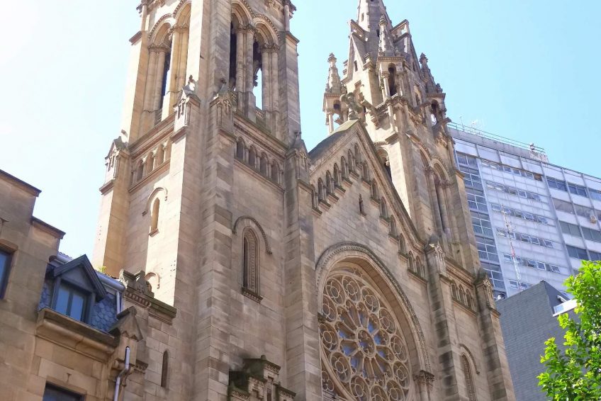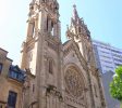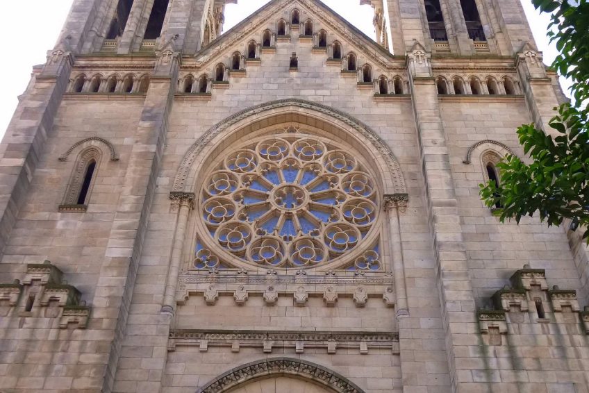 這座建築已經到了我們的時代,在立面上呈現出三角形的山形牆和單個中央塔樓,這些都是XIX設計的一部分。對於這種設計,它在20世紀被添加,不同的彩色玻璃窗可以欣賞,聖徒的形象。