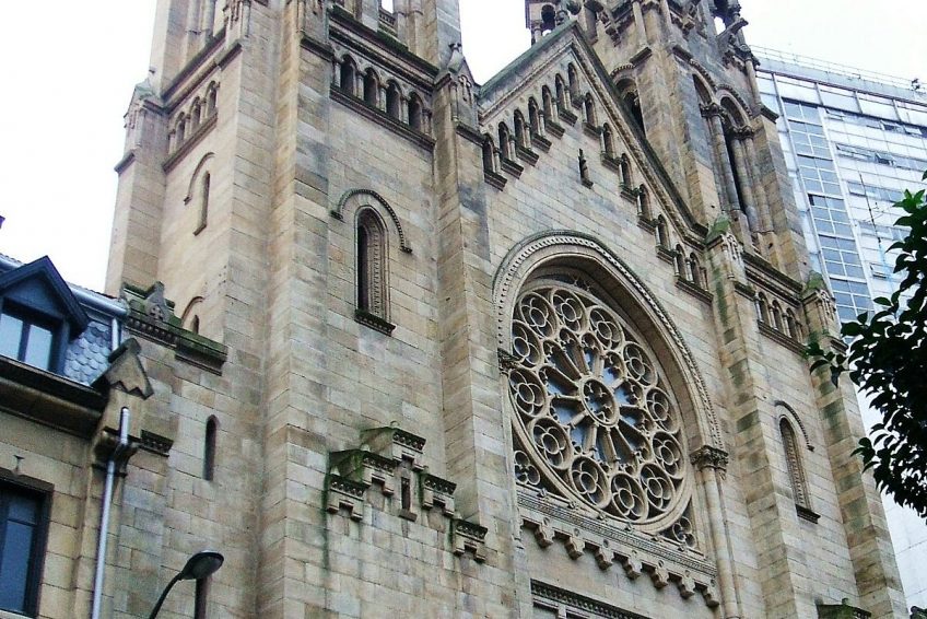 这座建筑已经到了我们的时代,在立面上呈现出三角形的山形墙和单个中央塔楼,这些都是XIX设计的一部分。对于这种设计,它在20世纪被添加,不同的彩色玻璃窗可以欣赏,圣徒的形象。