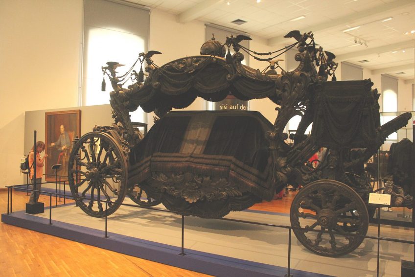 Sisi在onyz和噴氣式飛機上的6件式哀悼珠寶,在她的兒子皇太子魯道夫去世後,她曾經穿著她的哀悼禮服,也在這裡全部展出。這件帶有白鷺羽毛的黑色外套,在日內瓦湖被暗殺後覆蓋了Sisi,並被帶到了Hotel Beau Rivage酒店,提醒了一個悲慘的事件,就像被謀殺的女皇的死亡面具一樣。
