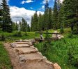 牛溪步道沿著牛溪,有許多海狸池塘,延伸到新娘瀑布的岔道,就像黑色的山路一樣,然後加入黑峽谷步道,與草坪湖步道相交。北界徑連接失落湖徑系統。北岔道從公園外的科曼奇峰荒野出發,到達公園邊界,最後到達失落湖。暴風峰小徑連接了科羅拉多州立大學位於科曼奇峰荒野的平里公園校區和公園內的北岔道。