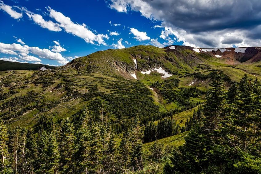 山徑嶺道多個公園彎道的景色。落基山脈的“公園”是冰川湖乾涸後形成的草地。