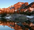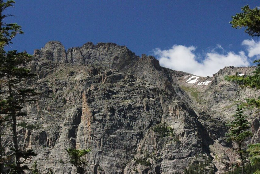 攀岩和登山的机会包括起伏的山脊,哈雷特峰,和朗斯峰,最高的山峰,在公园,最容易的路线是钥匙孔路线。这条8英里(13公里)的单向攀岩线路的海拔高度增加了4850英尺(1480米),宽阔的东立面,包括被称为钻石的区域,是许多经典的大岩壁攀岩路线的所在地。许多最高峰都有技术上的冰和岩石路线,从短暂的攀爬到长时间的多坡攀登。