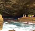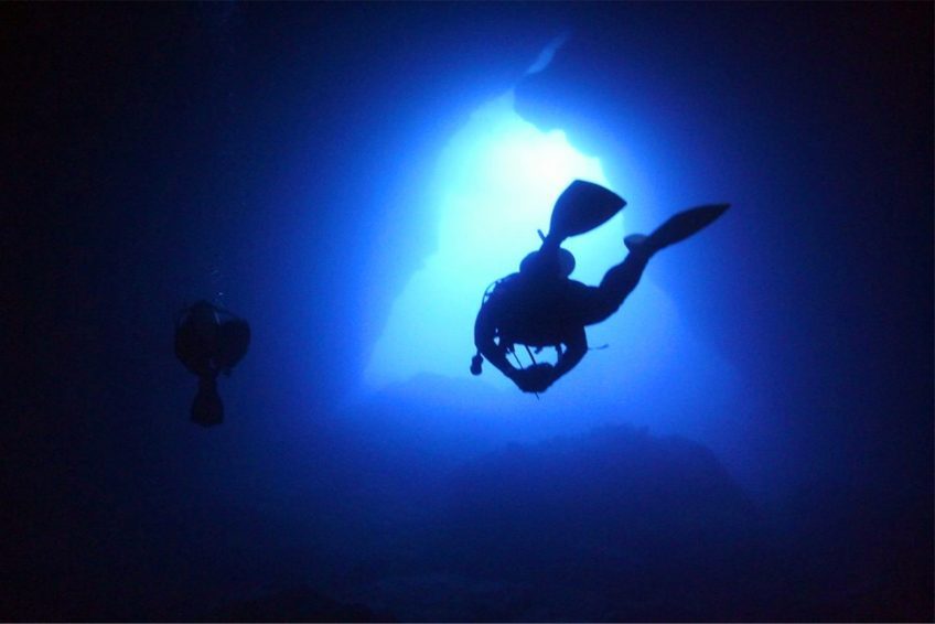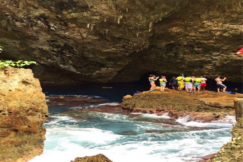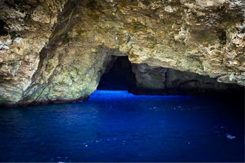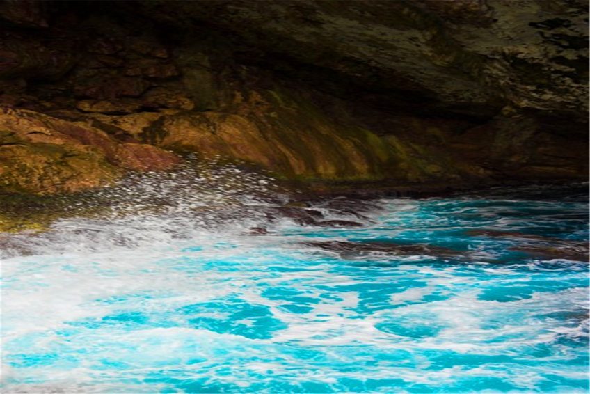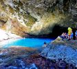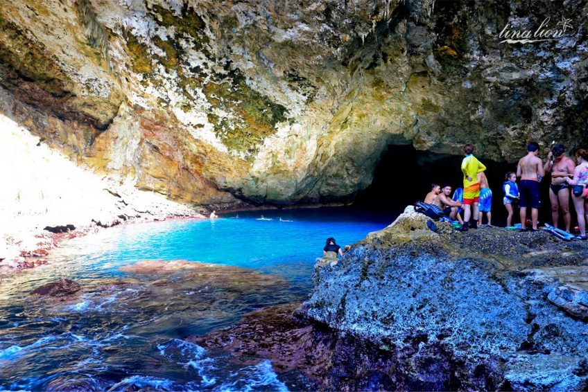 蓝洞(The Grotto)位于塞班岛的东北角,是与太平洋相连的天然洞穴,被《潜水人》杂志评为世界第二的洞穴潜水点。蓝洞外观看起来像张开嘴的海豚,内部是因为海水的侵蚀作用而形成的天然洞穴。里面有两个天然的游泳场,通过海底通道连接外部海洋,对于那些资深的深海潜水者来说,这将是一次无以伦比的潜水体验。