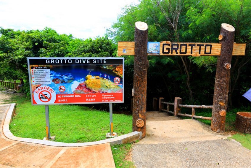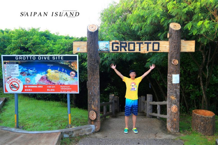 藍洞(The Grotto)位於塞班島的東北角,是與太平洋相連的天然洞穴,被《潛水人》雜誌評為世界第二的洞穴潛水點。藍洞外觀看起來像張開嘴的海豚,內部是因為海水的侵蝕作用而形成的天然洞穴。裡面有兩個天然的游泳場,通過海底通道連接外部海洋,對於那些資深的深海潛水者來說,這將是一次無以倫比的潛水體驗。
