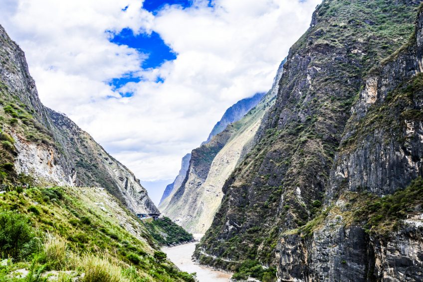 虎跳峡是在一个 最深的峡谷在这个星球上,它有最好的远足径在丽江地区。 20世纪80年代,外国背包客开始在该地区徒步旅行。