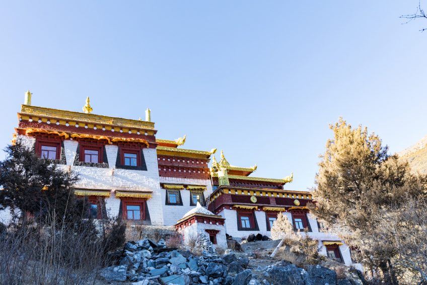 崇古寺佔據了亞丁自然保護區最佳地理位置。站在寺廟的前面,遊客可以在頭頂上享受誇張的藍天,腳下是黃綠色的間期草地,遠處沒有融化的雪山,後面則是寧靜的山谷。擁有如此迷人的風景,每一位旅行者,無論是攝影師還是綠手,都能輕鬆捕捉到美女作為專業級別的照片。 1928年,當洛克先生來到該地區接受調查時,他在崇古寺住了三天。通過他房間的小窗戶,他抓住了山谷的美麗,月亮下的寧靜平和的亞丁村,發現它只是希爾頓失落的地平線所描述的香格里拉藍色月亮谷的原址。