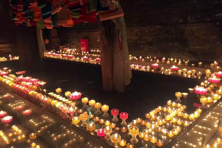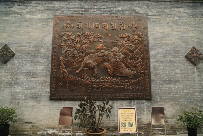一旦进入,你是一个巨大的砖面临精神墙高6米,长10米一米厚的- 。超越寺庙殿堂,佛龛显着包括1000手观音殿 -含有同情的,而阳刚面色多臂女神-和永久坛灯(万年灯;万年邓),灯芯浮在108 斤的价值防护棚内的油。光代表智慧,因此是一盏知识之光,它的亮度不朽。