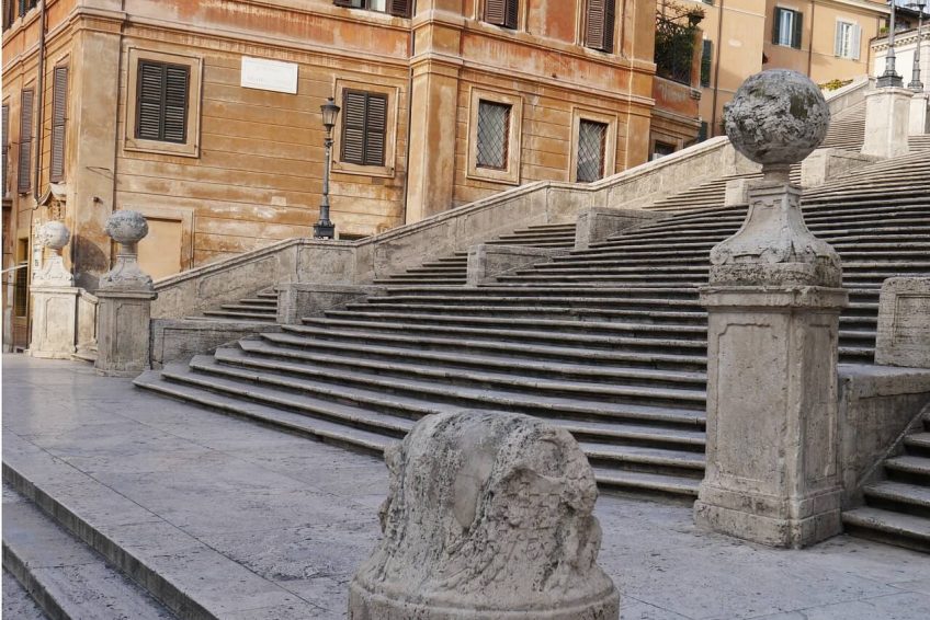 在广场,在右边的角落里当你开始爬台阶,是英国诗人约翰·济慈的房子住,于1821年去世;它现在是一个博物馆致力于他的记忆,充满了英国浪漫主义一代的纪念品。在相同的右边站15世纪前红衣主教洛伦佐Cybo de Mari的宫殿,现在法拉利迪Valbona建筑改变1936年马Piacentini设计,主要城市规划师在法西斯主义,与现代和谐完美的梯田与周围的巴洛克式的上下文。