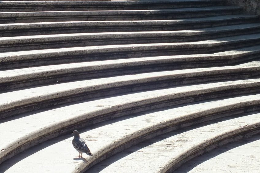 马克·科恩的歌“走过世界”,在1993年发布的专辑雨季,包括抒情”的西班牙台阶自由钟,我知道天使看到我们。”