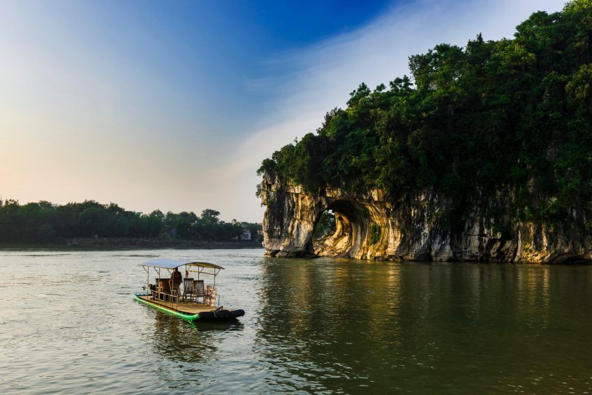 象鼻山又称像山,位于中国广西桂林市内,桃花江与漓江汇合处,是桂林的城徽。象山公园是桂林最著名的公园之一,以像山为主景,以桃花江、漓江、爱情岛等衬托。