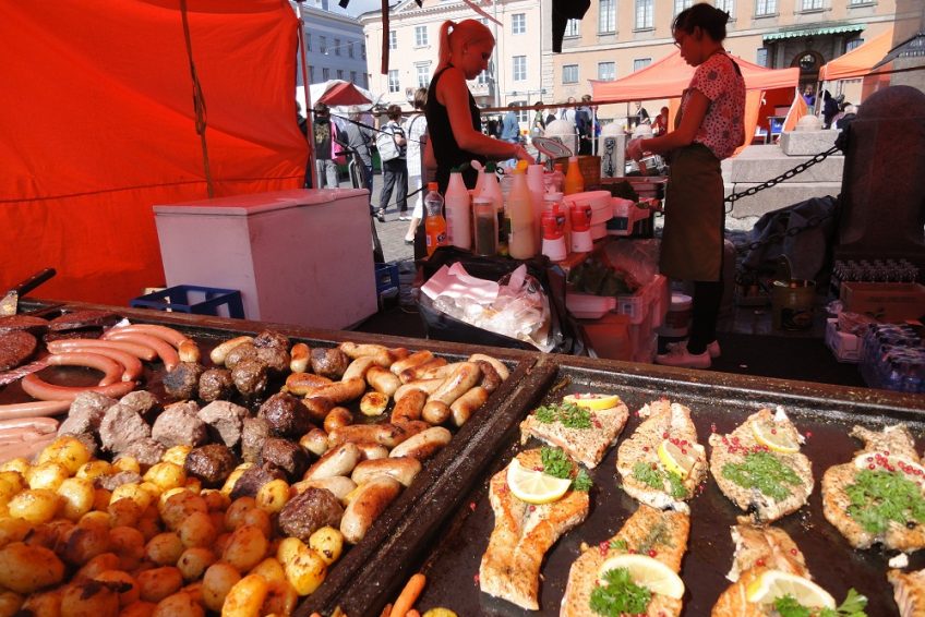 从春天到秋天,集市广场热闹非凡,供应商出售新鲜的芬兰食品和纪念品。广场上还有许多户外咖啡馆。一些咖啡馆还提供肉类糕点(芬兰语:lihapiirakka)。