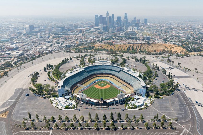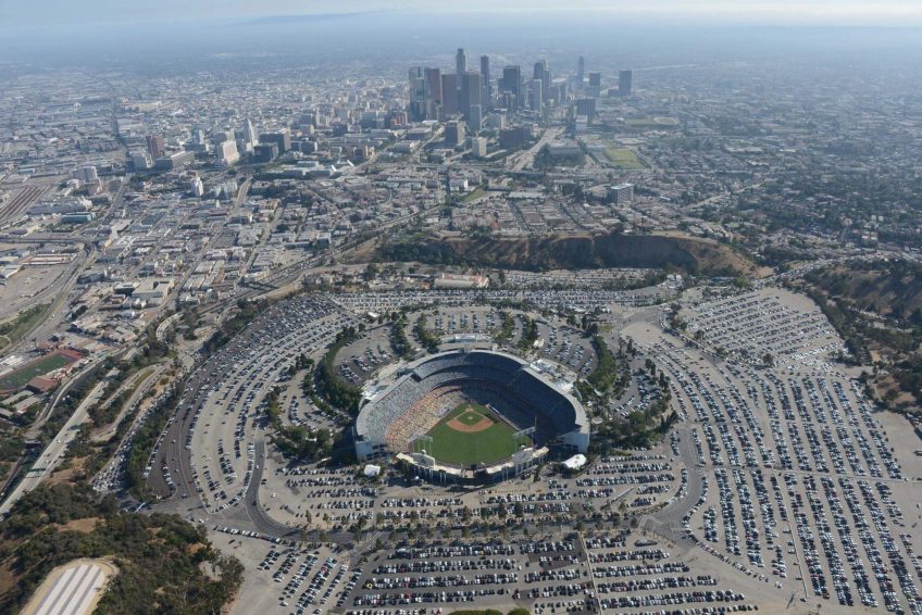 上世纪50年代中期,布鲁克林道奇队(Brooklyn Dodgers)队长奥马利(Walter O’malley)曾试图在纽约市布鲁克林区修建一座圆顶体育场,但未能与该市官员就土地收购达成协议,最终与洛杉矶市达成协议。在20世纪50年代早期,洛杉矶市政府利用土地征用权,利用1949年《联邦住房法案》(Federal Housing Act)的资金,从当地所有者和居民手中夺取了Dodger体育场的土地。该市曾计划开发“爱丽舍公园高地”(Elysian Park Heights)公共住房项目,该项目包括24栋13层的建筑和160多栋两层的联排别墅,此外还有新建的游乐场和学校,以及一所大学。