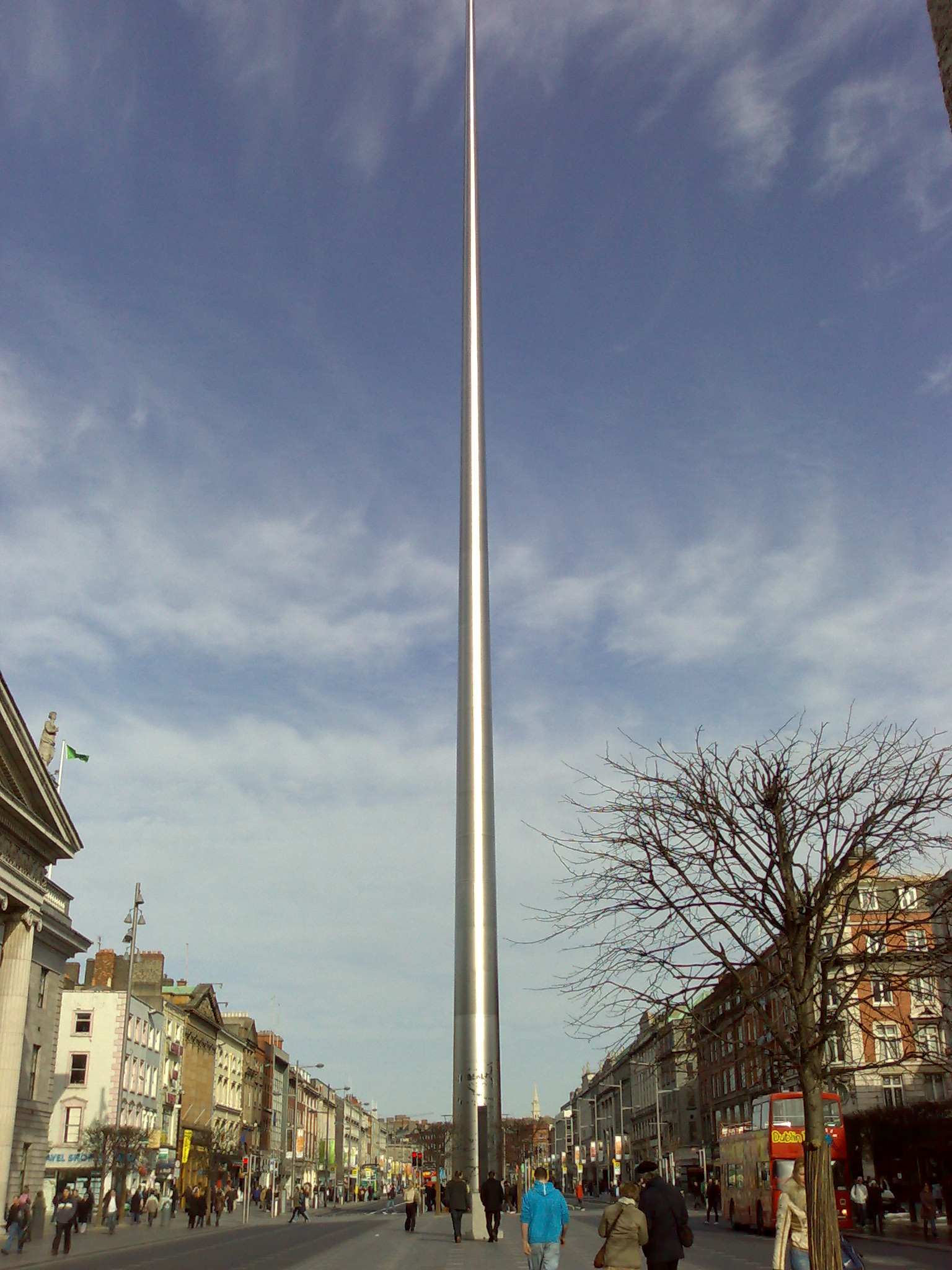 Spire巨大,引人注目和創新的紀念碑位於O’Connell街中間,就在著名的GPO對面。 Spire高120米,底部直徑3米,高出O’Connell Street,高於車頂線條,在技術上盡可能細長優雅。