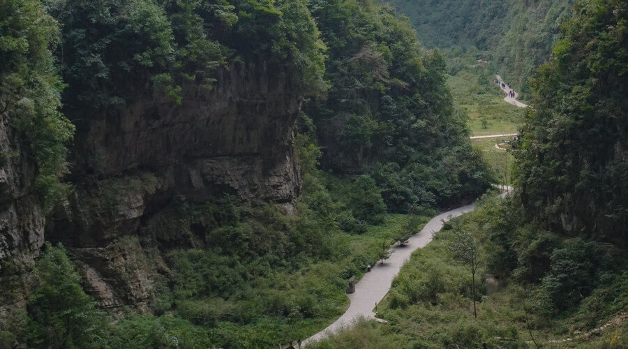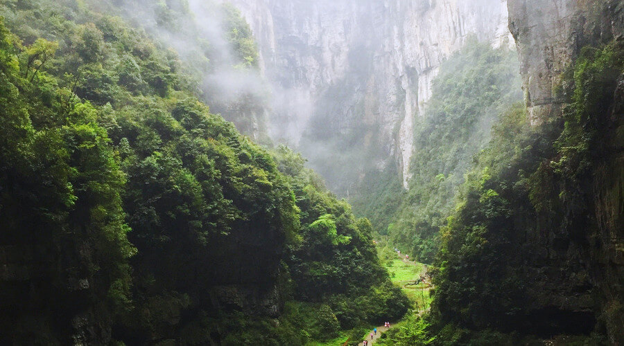 武隆喀斯特国家地质公园的三座天然桥梁位于0.7英里(1.2公里)长的峡谷中。它们是由于构造抬升和地下水侵蚀而演变而来的。一些部分隆起形成桥梁,其他部分坍塌形成岩溶坑。因此,“三坑自然桥”的独特景观完全是大自然的创造。