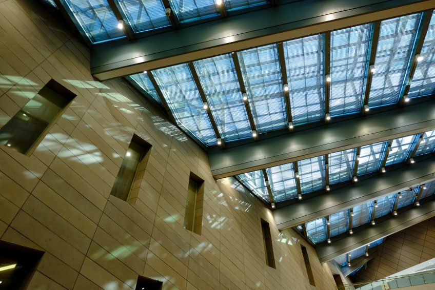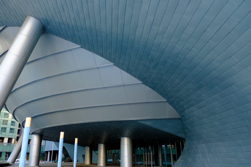 新河三角洲北部为音乐厅,它如同一只怒吼的雄狮奔腾向前,具有极强的视觉冲击力,奏响三角洲的最强音。东部为博物馆,建筑起伏跌宕,如同一部石头的史书,记录着城市发展的历程。西部为图书馆,期待人们读懂过去、现在几张清晰和未来的奥秘。三组建筑相互依存,首尾照应,共同围合形成中部下沉的市民广场,给市民提供了充满激情与想象的城市大舞台。