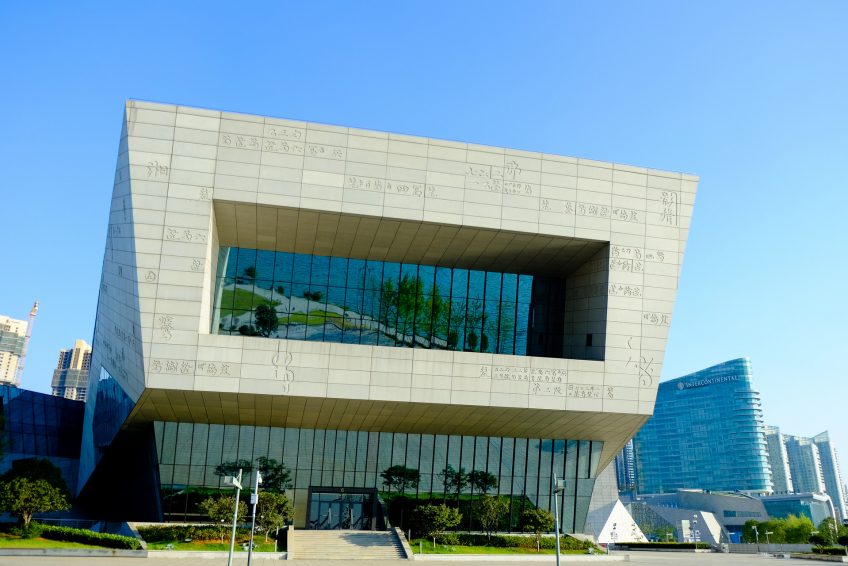 濱江文化園建築群佔地面積約186畝,總建築面積約15.5萬平方米。聳立於長沙新河三角洲的這三座建築好像從城市奔向江河的一組強有力的頑石,經歷史長河的沖刷和積澱從大地之間崛起,以自強不息的姿態迎江而立。其磅礴的氣勢,雄渾的外觀現象使其成為新城市中心的嶄新標誌。