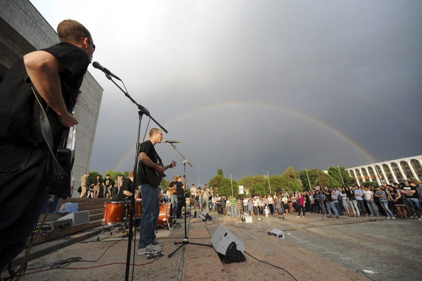 005年3月24日,廣場是吉爾吉斯斯坦鬱金香革命最大規模的反政府抗議活動的舉辦地。在全國各地發生數週的騷亂之後,下午早些時候有超過15,000人聚集在一起抗議2005年議會選舉的結果。抗議者與政府官員發生衝突,造成兩人死亡,100多人受傷。 [6]然而,抗議者很快控制了廣場,並衝進了白宮,迫使吉爾吉斯斯坦的第一任總統阿斯卡爾阿卡耶夫逃離該國,後來辭職。