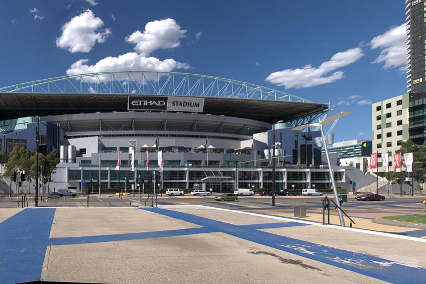 阿提哈德體育場(Etihad Stadium)以其獨特的伸縮式屋頂聞名,此屋頂是南半球最大的伸縮式屋頂,提供一年四季均適合觀賞體育賽事的環境。體育場的羅馬式環形座位區拉近觀眾與活動的距離,在體育迷中創造出傳奇般的氛圍。