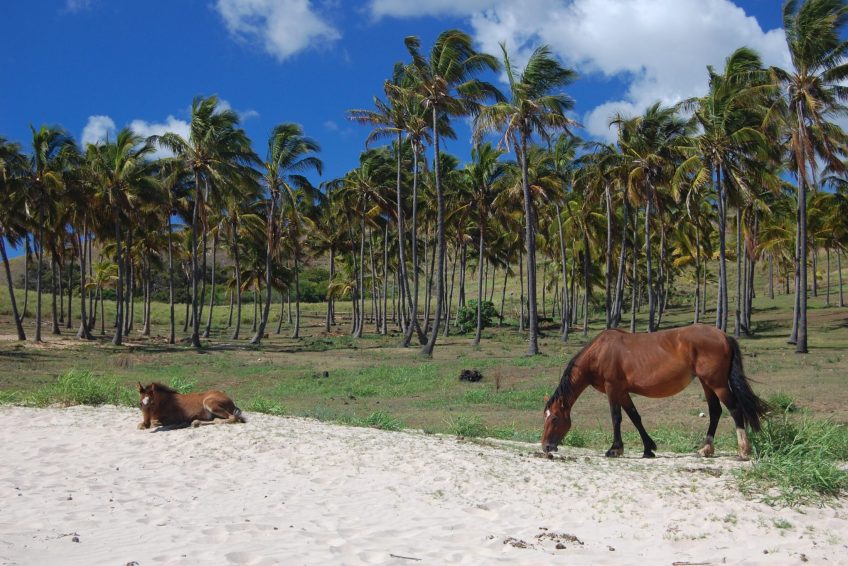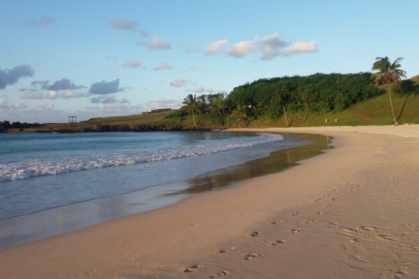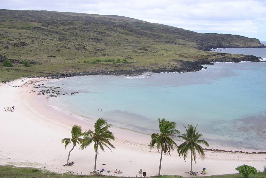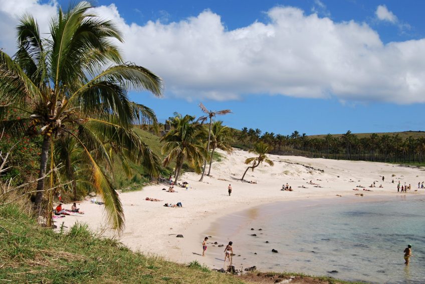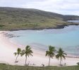 Anakena是複活節島上的主要海灘,代表了當我們想到一個天堂般的海灘時我們所擁有的典型畫面。它的白色和細珊瑚沙,結晶的綠松石海,平靜的海浪和椰子樹(幾十年前從塔希提島帶來)使它成為休息和休閒的理想場所。