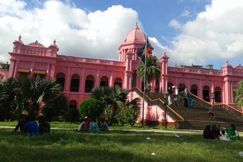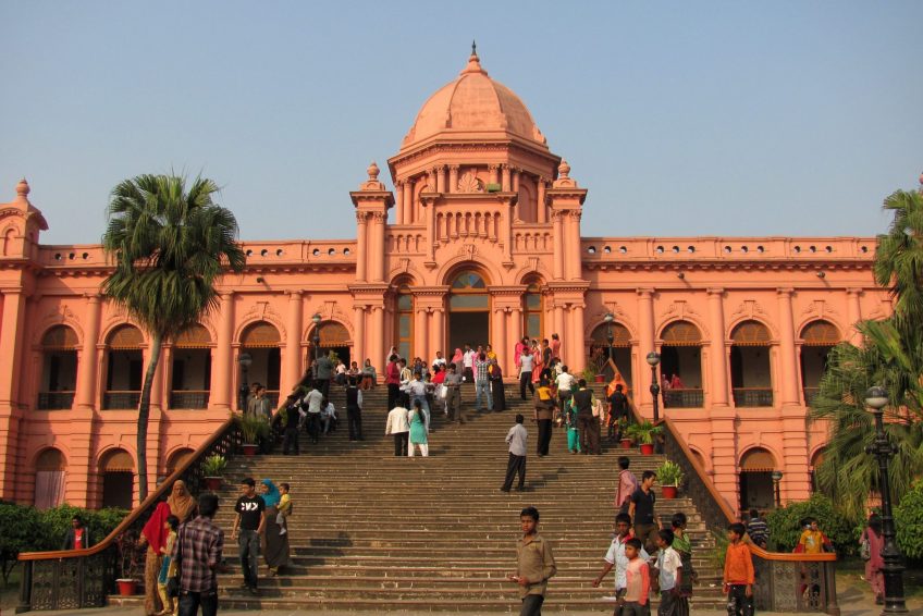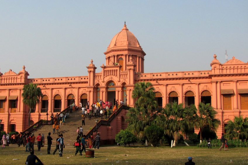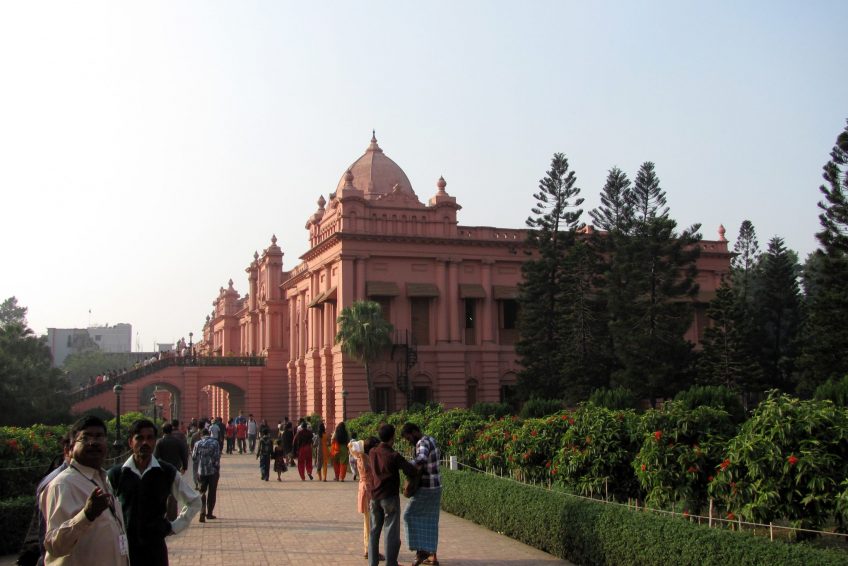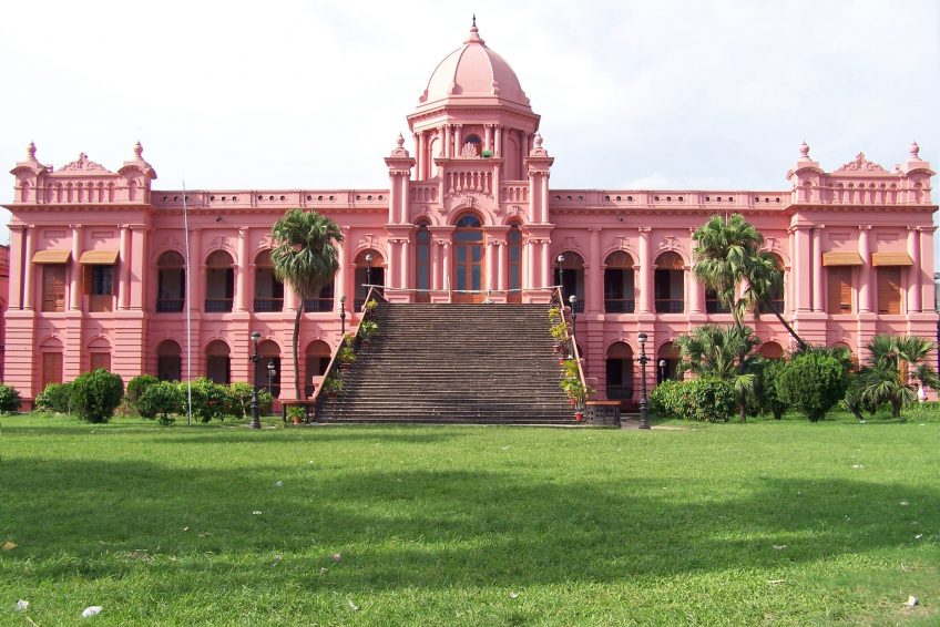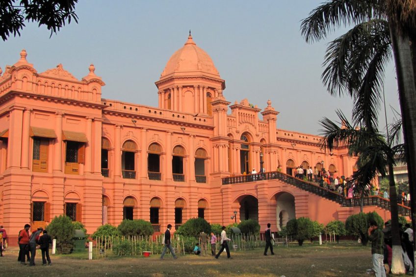 這座必看的粉紅宮殿建於1872年,位於該市最富有的zamindar(土地所有者)Nawab Abdul Ghani的一家古老的法國工廠的遺址上。在宮殿建造16年後,它被龍捲風破壞,然後在修復過程中被改變,變得比以前更加宏偉。每當他在城裡時,寇松勳爵就住在這裡。