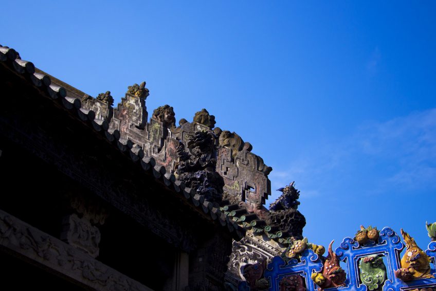 陈氏祖先是一个传统的中国学术综合体。对于从屋顶到屋顶的所有东西都是如此复杂的艺术品有点令人惊叹,这些屋顶上有11个陶瓷山脊,看起来就像躺在屋顶上的龙,还有石头扶手的铁铸件。铸铁件上刻有精美的设计和图片。图片有四种不同的主题,分别是“麒麟和凤凰”,“龙与宝珠”,“三只山羊”和“池塘里的金鱼”。许多技艺精湛的工匠必须在艺术品和装饰品上投入大量的精力。建筑可能需要花费很多。