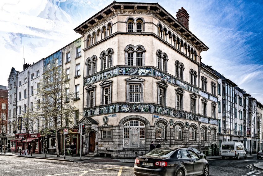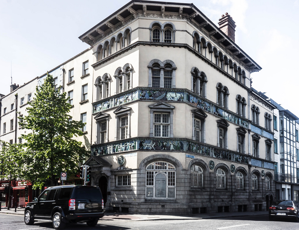 Sunlight Chambers有很多事情要做。位於議會大街和埃塞克斯碼頭的拐角處,這是一個色彩繽紛的地標,由Edward Ould設計,於1899年至1901年間為Lever Bros建造.20世紀90年代後期,Gilroy McMahon在保護工作期間,該建築得到了恢復和照亮。來自NCAD的諮詢。雖然赤陶瓷磚,深簷或拱廊可能引起人們對另一棟建築的注意,但它們卻被這些帶狀物推到了這裡。