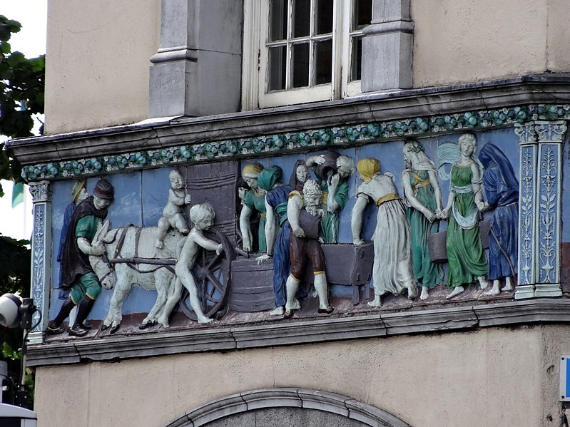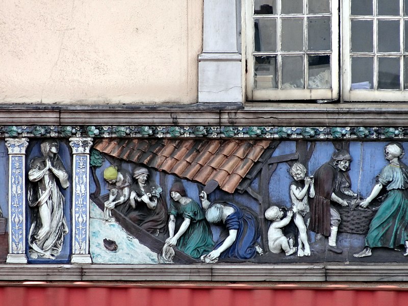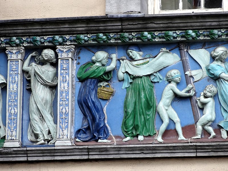 它的拱形窗戶和懸垂的屋簷,看起來像一座意大利宮殿,可能是為Medici家族c1500的軍校學生分支建造的。但掛在第二層,第一層和第二層牆壁上的奇怪3D裝飾是什麼?這裡有裸體嬰兒,一頭驢,一個建造船隻的男人,一個建造拱門的男人,還有一群文藝復興風格的女士在洗衣服。再加上一些耕地,一些橄欖枝和一個爐灶在角落裡吸煙。