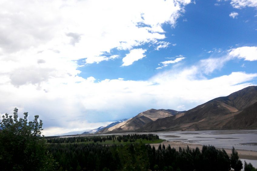 雅鲁藏布江是西藏第一大河。它像一条银色蛟龙,从海拔6000米以上的喜马拉雅山中段北坡发源,由西向东奔流于西藏高原南部著名的“藏南谷地”。流到东经95℃左右,它横穿喜马拉雅山,突然急转向南,形成有名的“雅鲁藏布江大拐弯”。最后在喜马拉雅东端珞渝地区的巴昔卡附近流出国境,并改称布拉马普特拉河,经印度,孟加拉国注入印度洋的孟加拉湾。从发源地至入海口,全长2900公里,流域面积67万平方公里。其中我国境内的雅鲁藏布江长约2093公里,流域面积23.8万平公里,雅鲁藏布江在我国各大河中,长度和流域面积均占第五位长度小于长江,黄河,黑龙江及怒江;流域面积则次于长江,黄河,黑龙江及珠江雅鲁藏布江所流贯的地区,除了印度半岛在500米以下外,大都在海拔4500米左右,是界上最高的大河。