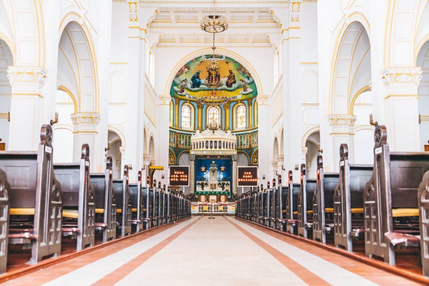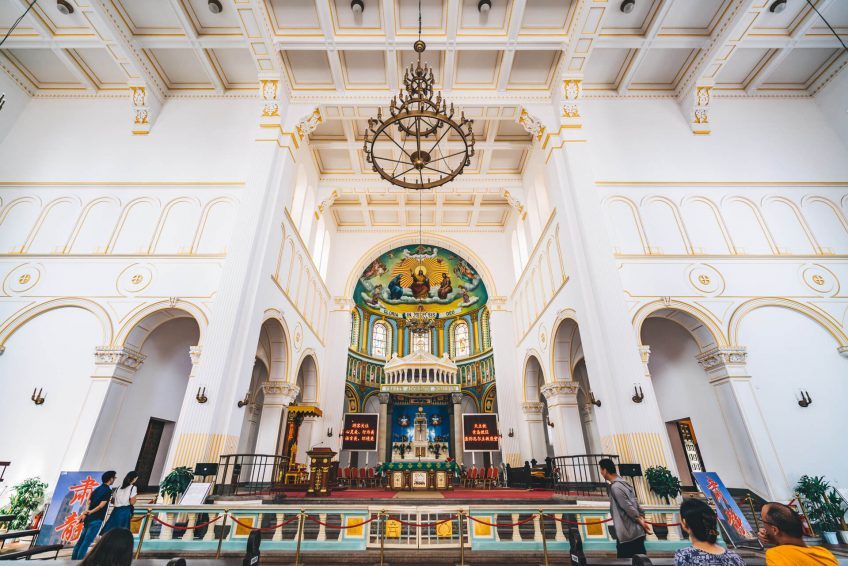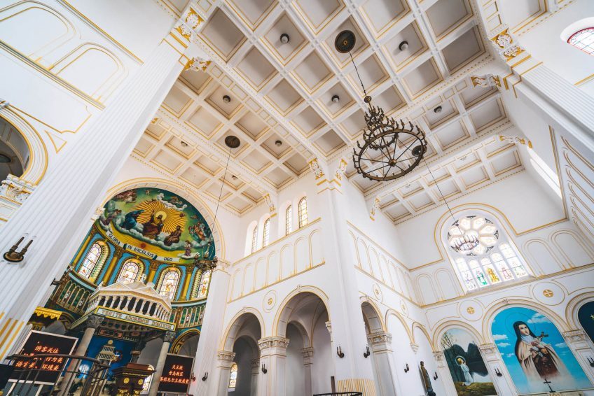 涼爽的白色內飾有趣地被著名基督徒的花哨圖片和真人大小的蠟模型所抵消,其中包括一幅美麗瑪麗的巨幅壁畫和一些簡單的,有品味的方便的方濟各會。這座教堂周圍的區域也值得一遊,古老的30年代德國建築與現代中國混凝土混合在一起。通往教堂的鵝卵石街道通常都擠滿了當地的穆斯林商販出售他們的商品,肉和章魚棒看起來很有趣,值得品嚐。