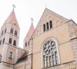 教堂主要採用黃色花崗岩和鋼筋混凝土建造,表面雕刻有簡潔美觀的紋理。窗戶呈半圓形拱形,線條流暢,簡約而莊重。門上方設有一扇巨大的玫瑰窗。每側都有一座高度為56米的鐘樓。它們的每個圓錐形尖塔都覆蓋著紅色瓷磚,並有一個4.5米高的巨大十字架。塔的側面有四個大鐘。當鈴聲響起時,聲音可以達到幾英里之外。走進教堂,你會看到一個寬敞明亮的大廳,高18米,可容納數千人。彩色玻璃窗反射柔和的燈光。大廳東側和西側有一條走廊。大廳後面有兩座大祭壇和四座小祭壇。