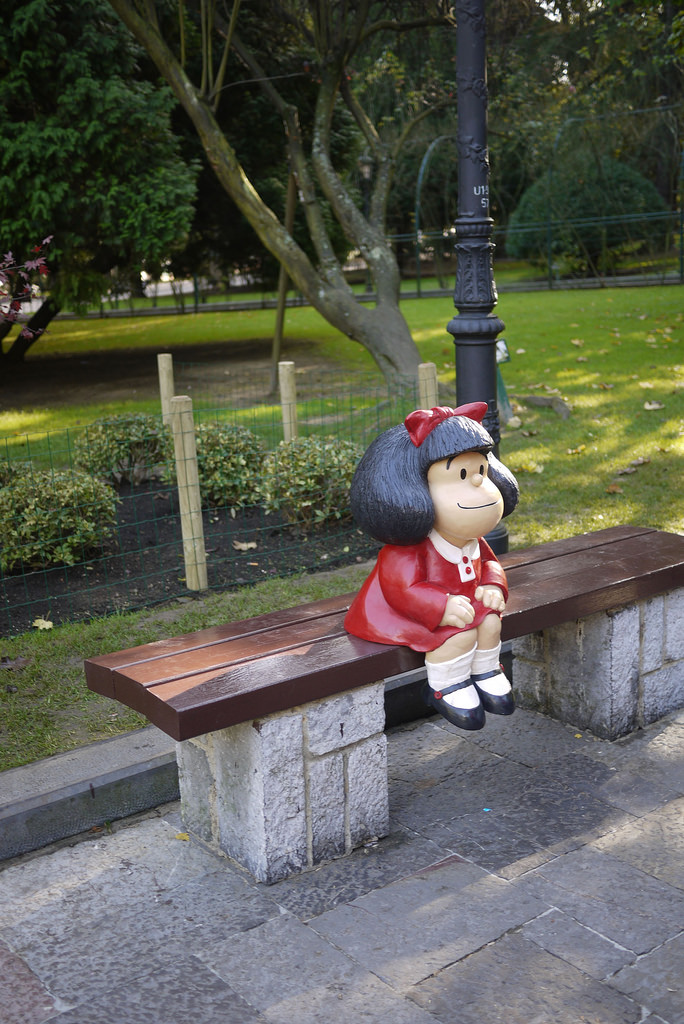 她的雕像位于喹啉过去居住的角落,智利和的Defensa之间,圣特尔莫附近。这是与人物过去坐在前面的连环画一样的建筑,同时考虑并发布他们对周围世界的敏锐观察.Mafalda的雕像只有80厘米高(31英寸),它的特点是她微笑着坐在公园的长椅上。