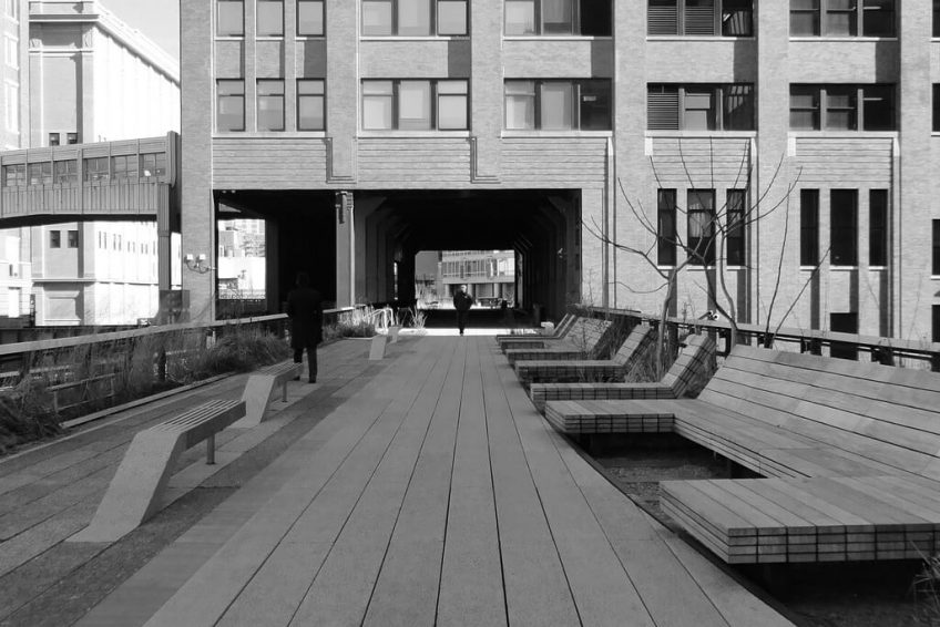 這條高鐵線路長1.45英里(2.33公里),由紐約曼哈頓西側的前紐約中央鐵路支線建造。高線公園的設計是James Corner Field Operations(項目負責人)、Diller Scofidio + Renfro和Piet Oudolf的合作。這個廢棄的建築被重新設計成一個“生活系統”,從景觀建築、城市設計和生態等多個學科中提取靈感。自2009年開業以來,高架已經成為當代景觀建築的標誌