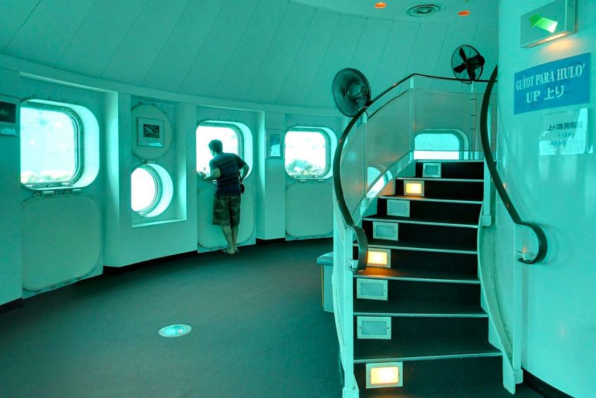 塔的另一賣點則是海底展望台,底下為一圓形建築,展望塔往水面下延伸10公尺,四周環繞著與真正潛艇無異的大型玻璃窗,共有16片方形及8片圓形組構而成的景觀窗,可清楚看到關島海底美景與多種類熱帶魚群和各式珊瑚。