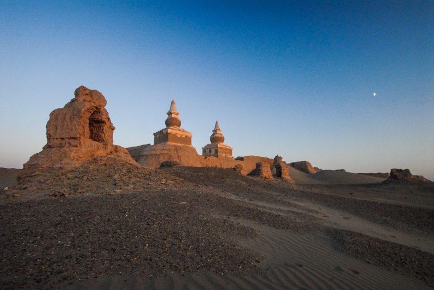 黑城遗址位于内蒙古西部阿拉善(阿拉善)联盟的额济纳旗镇(齐拉)东南35公里处。这是一个古老的堡垒,最初建于1032年,后来成为西夏帝国的贸易中心(1038-1227)。目前的Ejina以Tangut语的Eji Nai City(黑水城)命名。