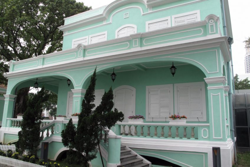 龙环葡韵为澳门八景之一,“龙环”是氹仔的旧称,这几幢建筑于1921年落成,曾是离岛高级官员的官邸,亦是一些土生葡人家庭住宅。政府将这一建筑群进行彻底修复,并作为展示的葡国建筑特色的博物馆。从威尼斯人度假村步行到龙环葡韵,大概15-20分钟,沿着坡道一路下行,五座薄荷绿色的葡萄牙风格建筑很显眼,这便是龙环葡韵的博物馆。其中三幢可以入内参观,由西到东分别建成“土生葡人之家”、“海岛之家”及“葡萄牙地区之家”,另外两间分别是“展览馆”和“迎宾馆”。