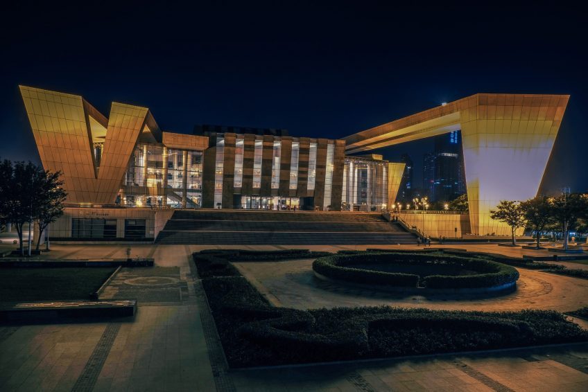 武漢琴台大劇院位於月湖之畔,漢江之濱,隔湖南望始建於明萬曆年間的古琴台,作為月湖文化藝術主題公園的核心組成部份,它是武漢最高檔次的文化表演場所,也是2007年第八屆中國藝術節的主會場。武漢琴台大劇院設計沒有直接借用古琴的造型,而是取其神韻,將其抽象,提取其基本線型和元素,並按照理性的原則,重塑獨特的建築語言,外伸的構架如同鋼琴敲擊的簧片,宛如“琴鍵飛奔”,又似“水袖飛舞”。巨大的尺度,富有永恆的紀念性,極具雕塑感和陽剛之氣。