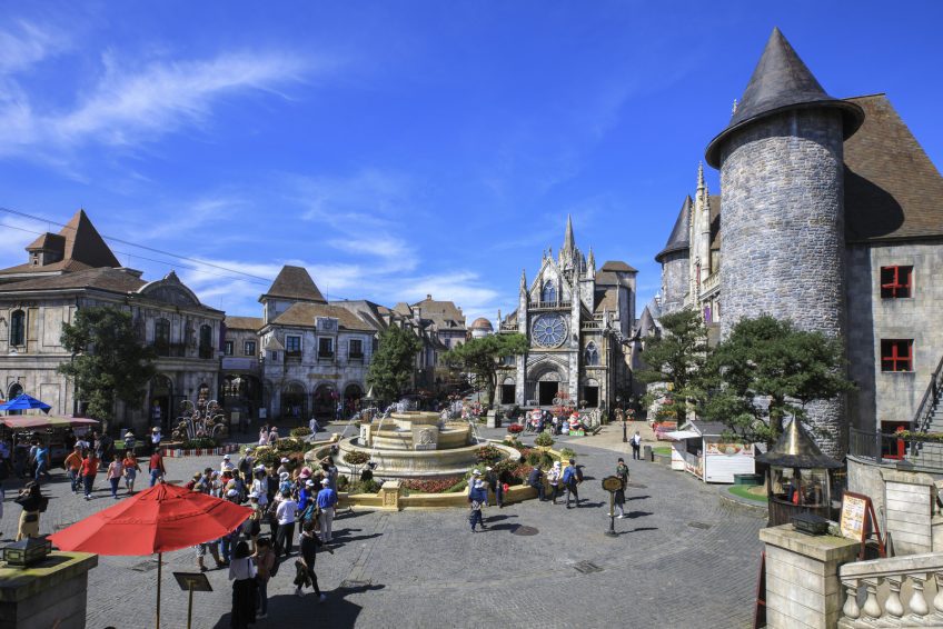 巴納山(Ba Na Hills)利用了一種新的旅行模式,這種模式有利於攝影記錄體驗本身的體驗。外牆和表面優先,可以取代現實。黑鐵路燈和搖搖欲墜的石頭形成街景。新建築看起來很舊,被放置在某些相機過濾器下,呈現出精緻,古典的外觀。實際上,觸摸這個法國村莊的建築物,可以看到漆器和混凝土,這些感覺與法國古老村莊搖搖欲墜的石頭略有不同。