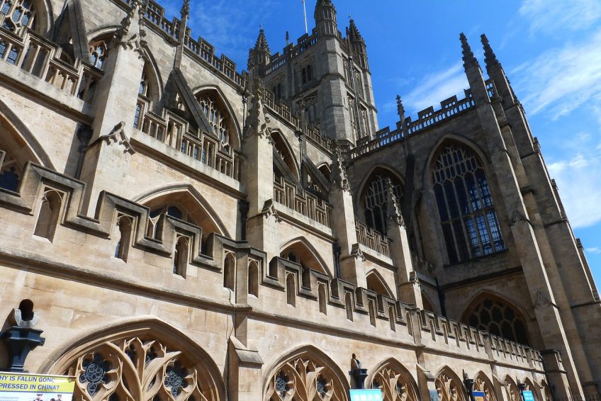 巴斯主教和威爾斯(又名“巴斯修道院”)的哥特式大教堂成立於1499年,主教奧利弗·金經歷了一個生動的夢想,即​​天使們上下爬梯。他還聽到一個聲音宣稱:“皇冠上應該種一棵橄欖樹,國王就會恢復教堂。” 作為重建教堂的標誌(該遺址自公元757年起被基督徒用作禮拜場所),這個夢想在建築物西側的石頭上錯綜複雜地永生。