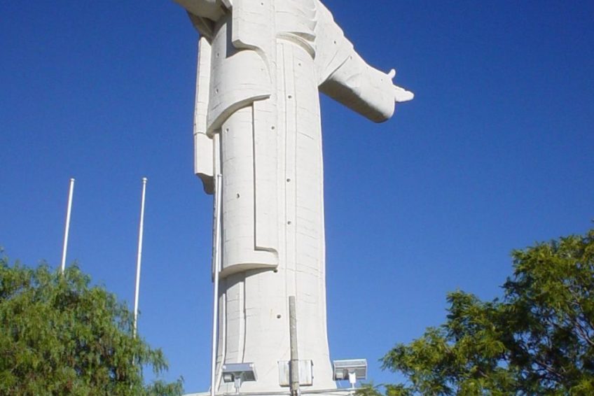 这座雕像略小于波兰Świebodzin的国王基督(如果算上基督王的高2米(6.6英尺)高36米),并且比里约热内卢以外的基督救世主(30米高)更高 ,巴西,使它成为世界上第二大耶稣基督雕像。[2] 这是南半球第三大雕像,仅次于委内瑞拉的圣女德拉巴斯雕像,以及巴西卡西亚的圣丽塔雕像。 雕像的左手指向南方,右方指向北方。