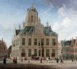 在Markt的西侧是代尔夫特文艺复兴时期的市政厅(Stadhuis)。这座令人印象深刻的建筑建于17世纪,位于原始的13世纪市政厅的遗址上,保留了其前身的一个幸存部分:15世纪的石塔,被称为Het Steen,装饰有壁柱和雕塑,以及带有小山墙的小山墙。正义的形象。酒店内部的亮点包括许多装饰精美的客房,包括Orange Gallery和Council Chamber,以及16至18世纪的精美画作。市政厅后面是古老的市政称重屋(瓦格),现在是市政剧院,毗邻的肉馆(Vleeshal),很容易被两头牛头所识别。