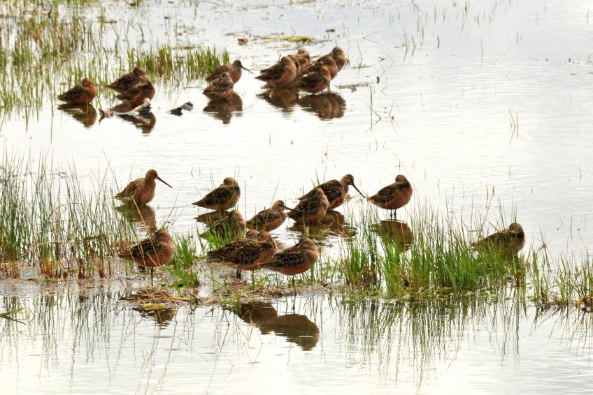 在夏季,Cetti,蘆葦和莎草鶯可以聽到喋喋不休的聲音,而田鼠,紅腳鷸,草地p和雲雀正忙著在沼澤地上定居下來。