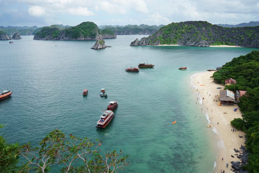 下龙湾是越南北部中国边境附近的一个美丽的自然奇观。海湾点缀着1600个石灰岩岛屿和小岛,占地面积超过1,500平方公里。这个非同寻常的地区于1994年被联合国教科文组织列为世界遗产。对于许多游客来说,这个地方就像一部电影。事实是,下龙湾拥有广泛的生物多样性,而超现实主义的风景确实在无尽的电影中出现。 前往下龙湾的最佳方式是乘坐汽车,小巴或巴士前往距离酒店仅170公里的河内。如果预算不是问题,也可以进行一小时的直升机转移。