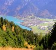 因特拉肯和哈德湖两个湖泊的景色非常壮观。在阿勒河(Aare River)上的桥旁,哈德高山野生动物园(Harder Alpine Wildlife Park)旁边,哈德库尔姆(Harder-Kulm)索道以64度的坡度爬上哈德(Harder),海拔1322米。