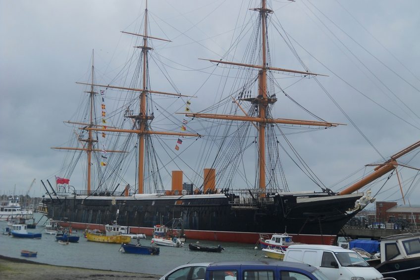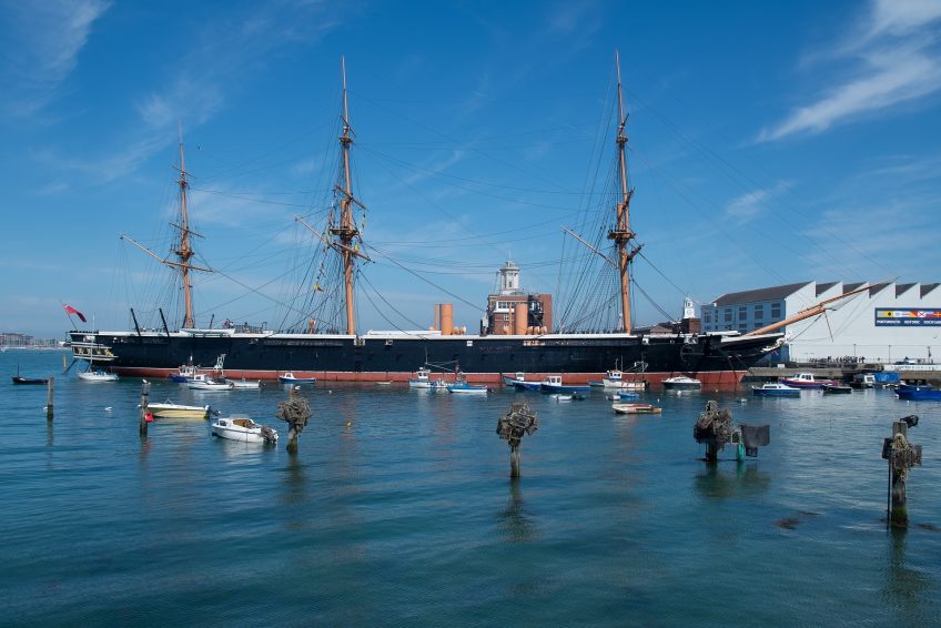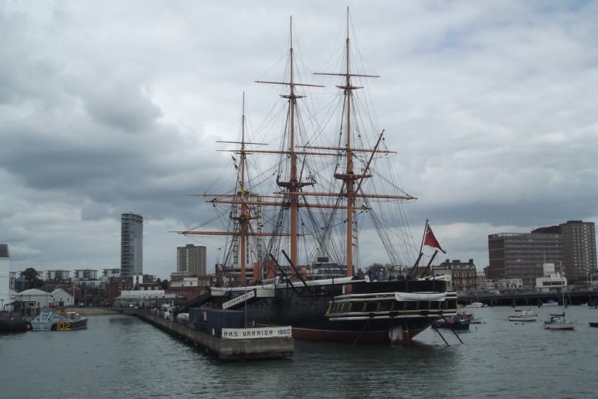 1987年6月,經過哈特爾普爾八年的修復工作,HMS Warrior終於回到了朴茨茅斯的家鄉。這艘418英尺長,9,700噸級的船舶於1860年發射,是世界上第一艘鐵殼戰艦之一,是同類型中最大,裝備最好的船舶之一。建於公元1859至1861年,用以應對法國1859年下水的世界上第一艘遠洋木殼鐵甲艦光榮號。是勇士級鐵甲艦首艦,與其姊妹艦黑親王號同為世界上最早採用鐵甲船殼的軍艦。現在是一個漂浮的博物館,HMS Warrior是一種值得探索的享受。參觀的亮點包括參觀經過修復的船員宿舍,包括船長和軍官區,以及描繪海上經常艱難生活的展示。