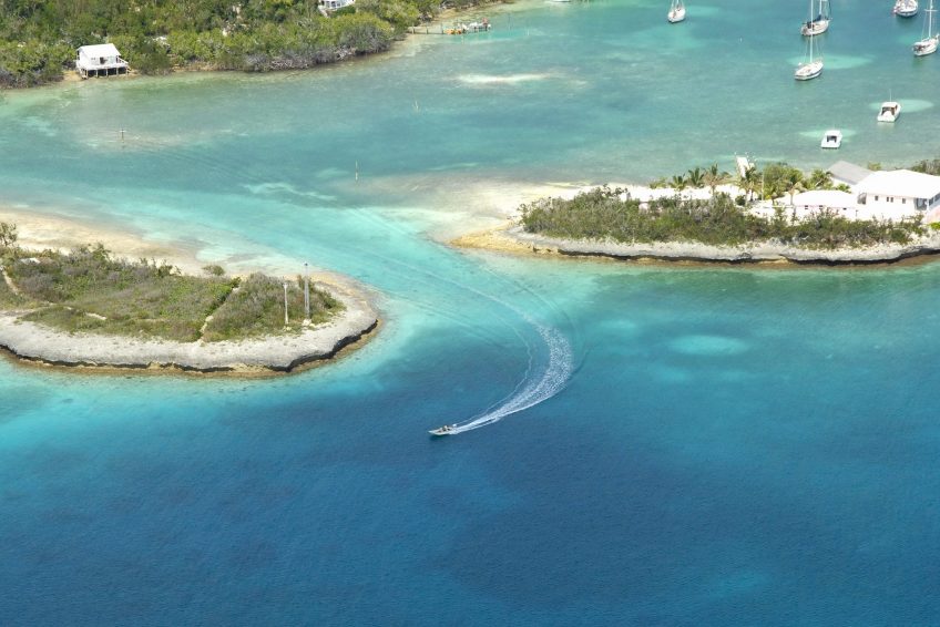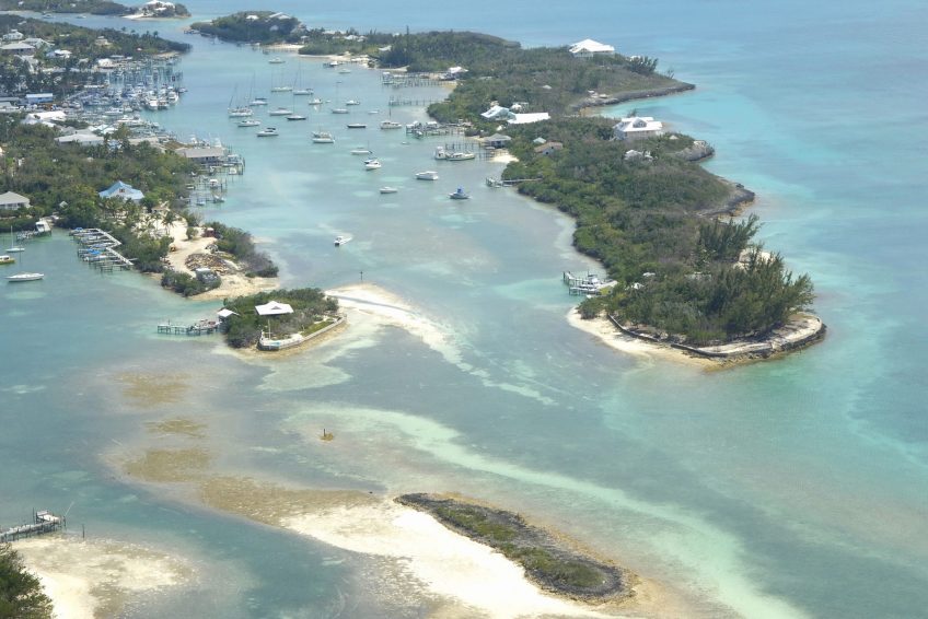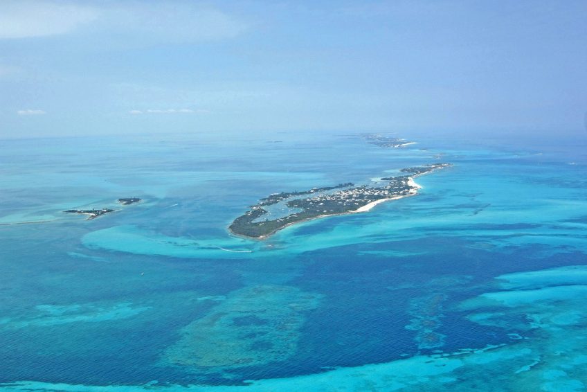 1862年8月擱淺的美國航空母艦阿迪朗達克號(USS Adirondack, 1862)的殘骸散落在Man-O-War號東北方向的礁石上。從馬什港乘渡輪前往Man-O-War Cay。